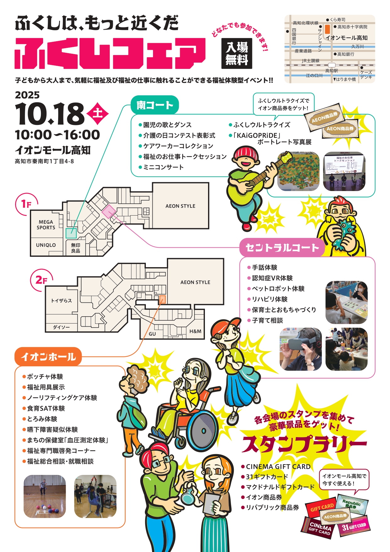 10月18日(土)にイオンモール高知で開催の「ふくしフェア2025」のイベントタイムスケジュールをお知らせします。